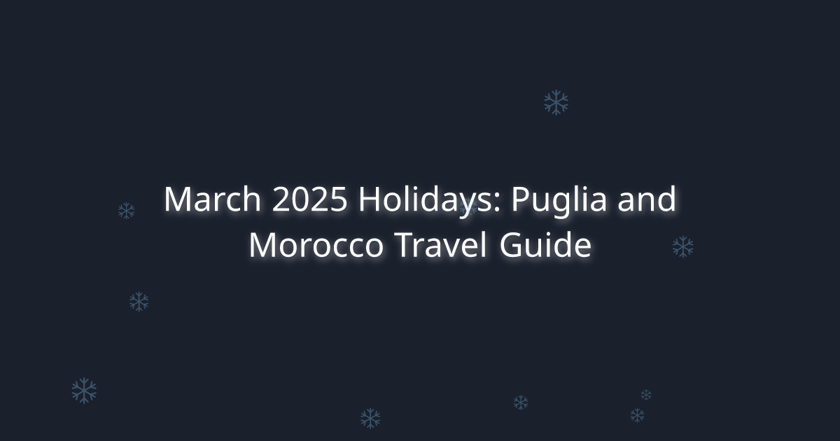 Plan your perfect March 2025 getaway to Puglia or Morocco! Discover coastal hikes, historic towns, desert adventures, and vibrant cities. Compare destinations and book your dream vacation.